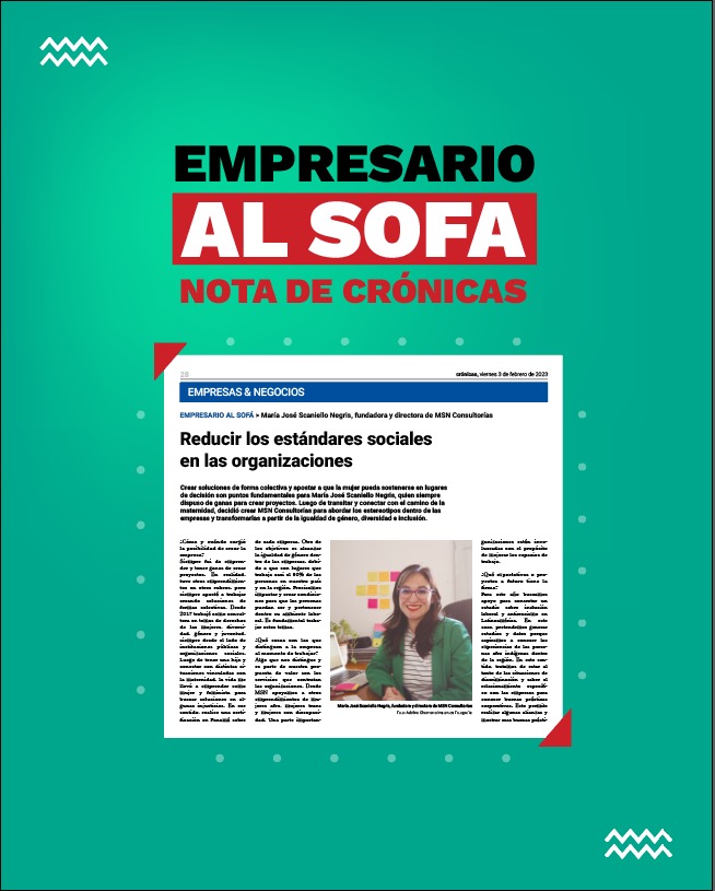 Siempre fui de emprender y tener ganas de crear proyectos. Luego de tener una hija y conectar con distintas situaciones vinculadas con la maternidad, la vida me llevó a emprender como mujer y feminista para buscar soluciones en algunas injusticias. En ese sentido, realice una certificación en Panamá sobre asesoramiento a empresas en temas de igualdad de género. A partir de esto nació MSN Consultorías, que busca abordar estereotipos dentro de las organizaciones para poder transformarlas en cuestiones de igualdad de género, diversidad e inclusión.